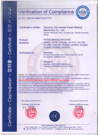 Fondée en 1982, l’entreprise Qinyang City Huaxia Paper Making Machinery Co., Ltd. s’élance dans la fabrication et production d’équipement de papeterie. Avec plus de 30 ans d’expérience dans le domaine du papier et de la pâte à papier, nous sommes désormais un des leaders de notre secteur en Chine et possédons un département de Recherche et Développement de pointe. Nous vous proposons une gamme de machines de production de papier de haute qualité capables de produire du papier d’imprimante et d’écriture, du papier-tissu, du papier d’emballage et du papier spécialisé. Nous proposons également une gamme de presses à papier carton pour la création de boite en carton pour œufs, container en carton pâte et autres couverts jetables en papier. Notre ligne de produits contient des cylindres de moulage de type 1575, 1760, 1880, 2400, 2800, 3600 et 4200, des machines de Fourdrinier, ainsi que des presses à côté simple, à 4 côtés, à 8 côtés et 12 côtés.